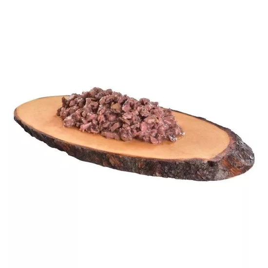 Összetétel: 85% húsfilé (71% csirke, 14% fácán), 12% hús alaplé, 1% málnalevél, 1% lenmagolaj, 0.5% ásványi anyagok, 0.5% növényi keményítő. Analitikai összetevők: fehérje 8.0%, nyerszsír 4.8%, nyersrost 0.5%, nyershamu 2.1%, nedvesség 82.0%, kalcium 0.15%, foszfor 0.2%, nátrium 0.3%, omega-3 0.2%.