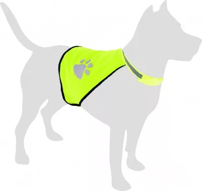 Fluoreszkáló biztonsági mellény, amely fényvisszaverő csíkjai és mancs mintái biztosítják, hogy kutyája jól látszódjon a sötétben.