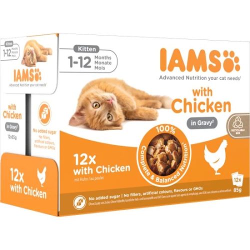 Iams Cat Delights alutasak Kitten & Junior csirke falatkák ízletes szószban, Multipack 12x85g