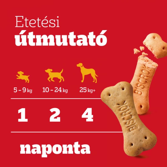 - Kistestű kutyáknak (pl. tacskó) max. 1 keksz naponta.