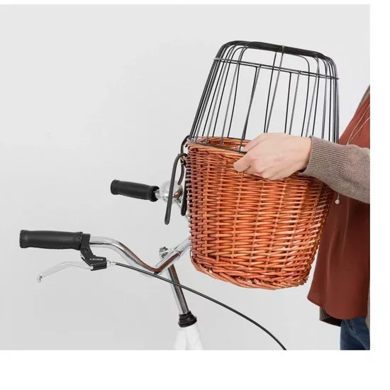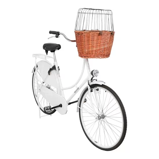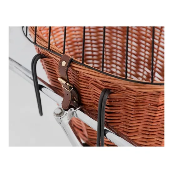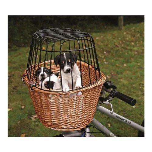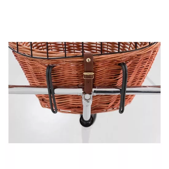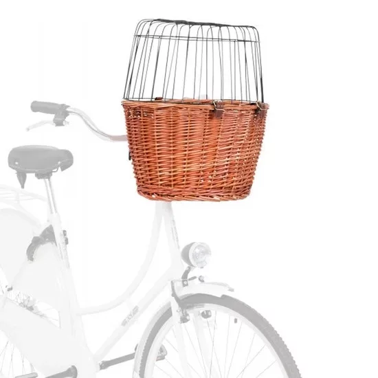 A kosárra felszerelt tartóval gyorsan rögzíthető a kerékpárhoz. A kosár max. 5kg-ig terhelhető. A fonott kosárra erősített galvanizált fém rács gondoskodik róla, hogy kedvence a kosárban biztonságosan utazhasson. Mérete: 44x48x33cm
