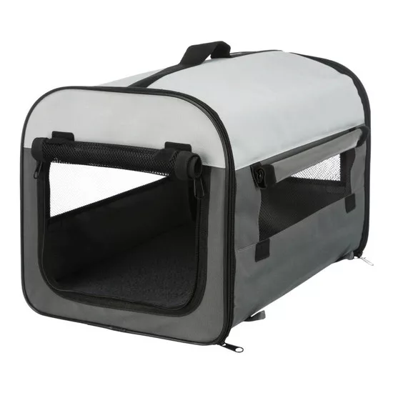 Ideális hely kedvencének otthon az autóban vagy utazáskor. A hálós betét biztosítja a megfelelő levegőellátást és a puha thermobelső melegen tartja kedvencét a hideg padlón is. Az ajtót zipzárral lehet zárni. A három oldalzseb elegendő helyet biztosít a jutalomfalatnak nyakörvnek stb. A mobil kennel összehajtható és a mellékelt nejlon táskában tárolható