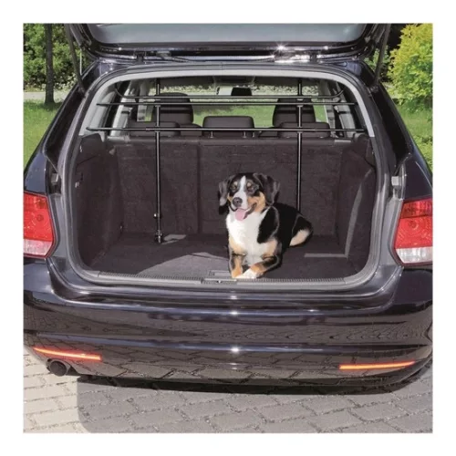 A 2 elemből álló univerzális Trixie kutyarács alkalmas kisebb kombi autók csomagtartójába történő beépítésre. A rács megakadályozza, hogy a kutya az utas ülésekre másszon, A rácsot a teleszkópos rudakkal kell az autó padlózata és teteje közé szorítani. A vízszintes rudakat az autó szélességéhez szükséges állítani. Szélessége: 85-140 cm, magassága 75-110cm, fekete