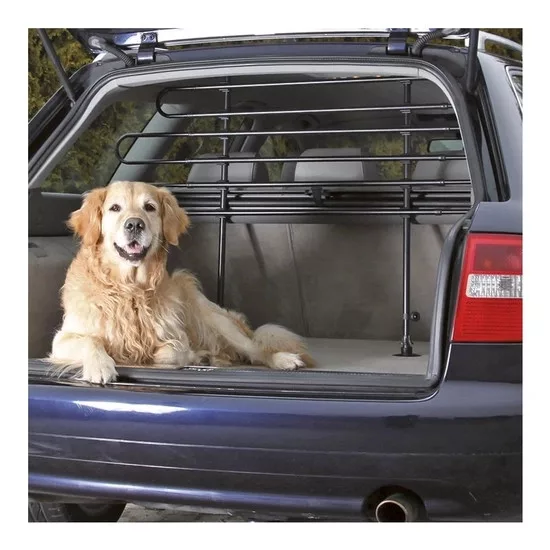 A 3 elemből álló univerzális Trixie kutyarács alkalmas kisebb kombi autók csomagtartójába történő beépítésre. A rács megakadályozza, hogy a kutya az utas ülésekre másszon, A rácsot a teleszkópos rudakkal kell az autó padlózata és teteje közé szorítani. A vízszintes rudakat az autó szélességéhez szükséges állítani. Szélessége: 85-140 cm, magassága 75-110cm, fekete