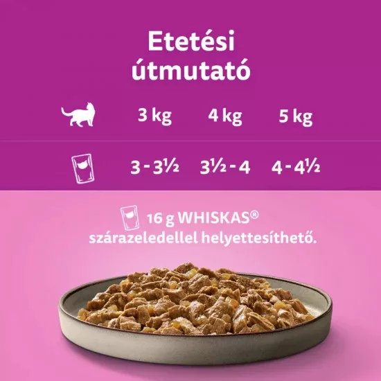 Etetési útmutató: Étrendváltáskor érdemes bizonyos átállási időt hagyni, hogy kedvence alkalmazkodjon az új eledelhez. Az etetési mennyiség kialakításakor vegye figyelembe macskája igényét. Átlagosnál nagyobb testsúlyú macska esetében csökkentse a napi etetési mennyiséget. Mindig gondoskodjon megfelelő mennyiségű ivóvízről kedvence számára. Szobahőmérsékleten tálalva a legfinomabb.